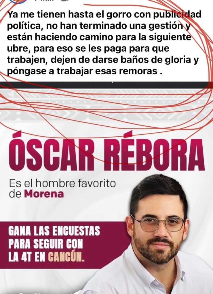 Este compa, que es el que manda ahorita en el Congreso del estado, anda desatado con las brochas. Como si no tuviera otra cosa que hacer, mandó pintar su nombre en cuanta barda se encuentra por todo Cancún. Vas por la calle y ahí está su nombre, vas por el mercado y ahí está de nuevo; el hombre ya se siente el candidato oficial y cree que pintarrajeando las paredes nos va a convencer. En su Facebook no para de subir contenido alabando a la “nomberuan” del estado, elogiando su trabajo y jurando por las tres cruces que desde que Mara Lezama llegó al poder, todo es color de rosa en Quintana Roo.
